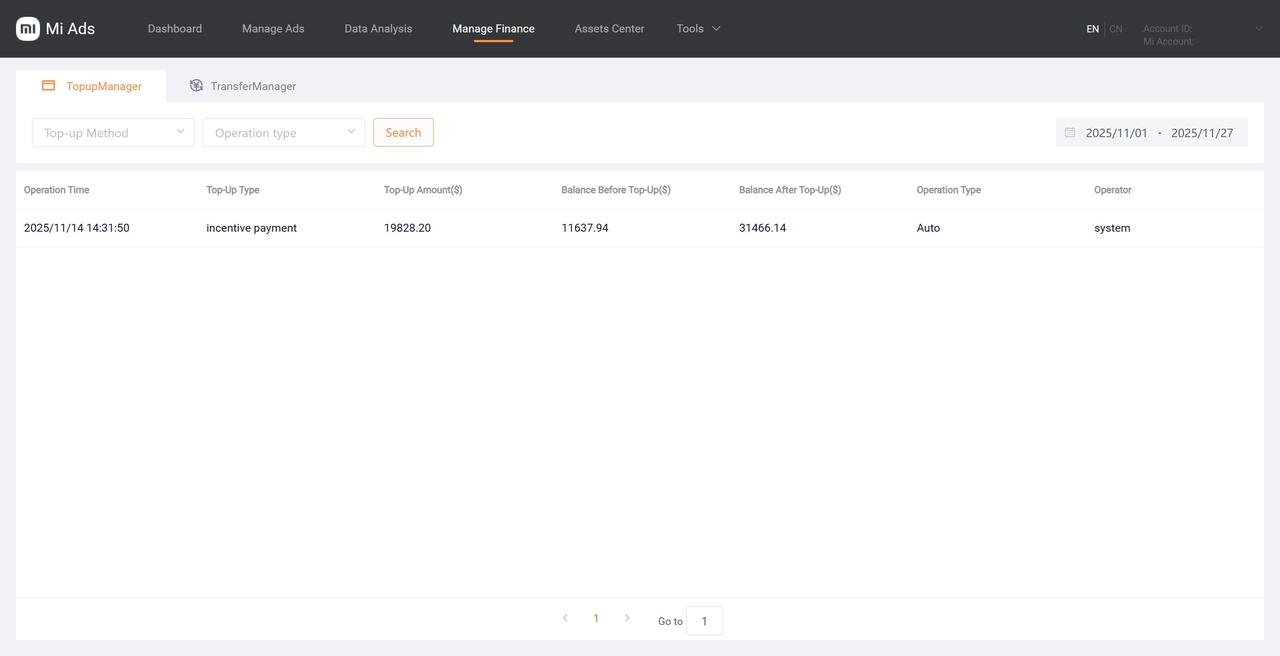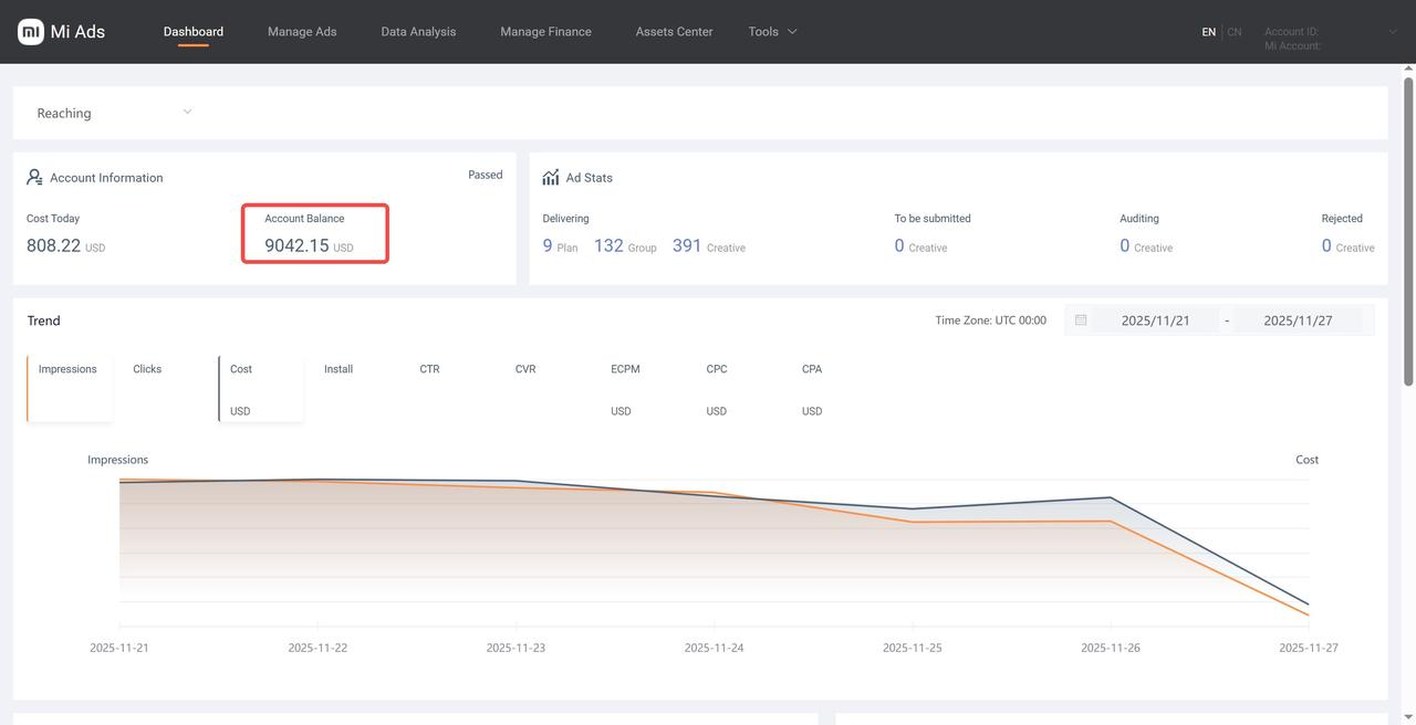 The account balance on the Mi Ads overview page of AA and advertiser accounts will also increase by the incentive amount credited for the month.