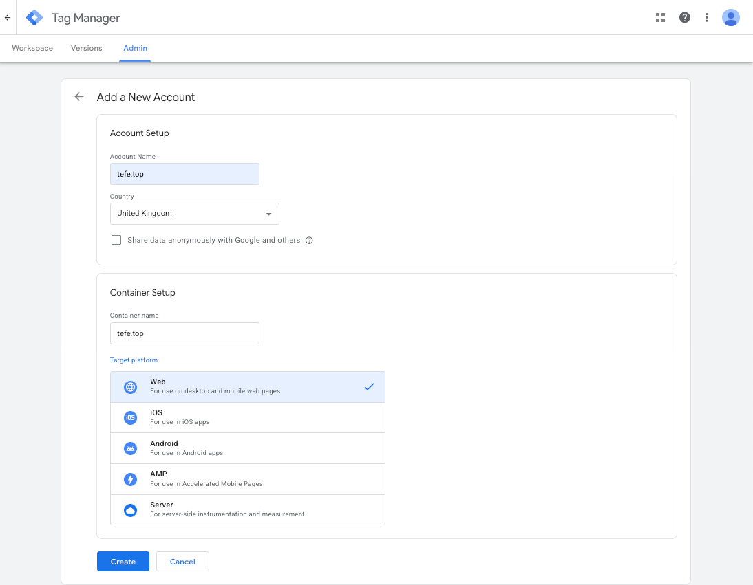 - Create a Google Tag Manager account and container,install Google Tag Manager code on your website.