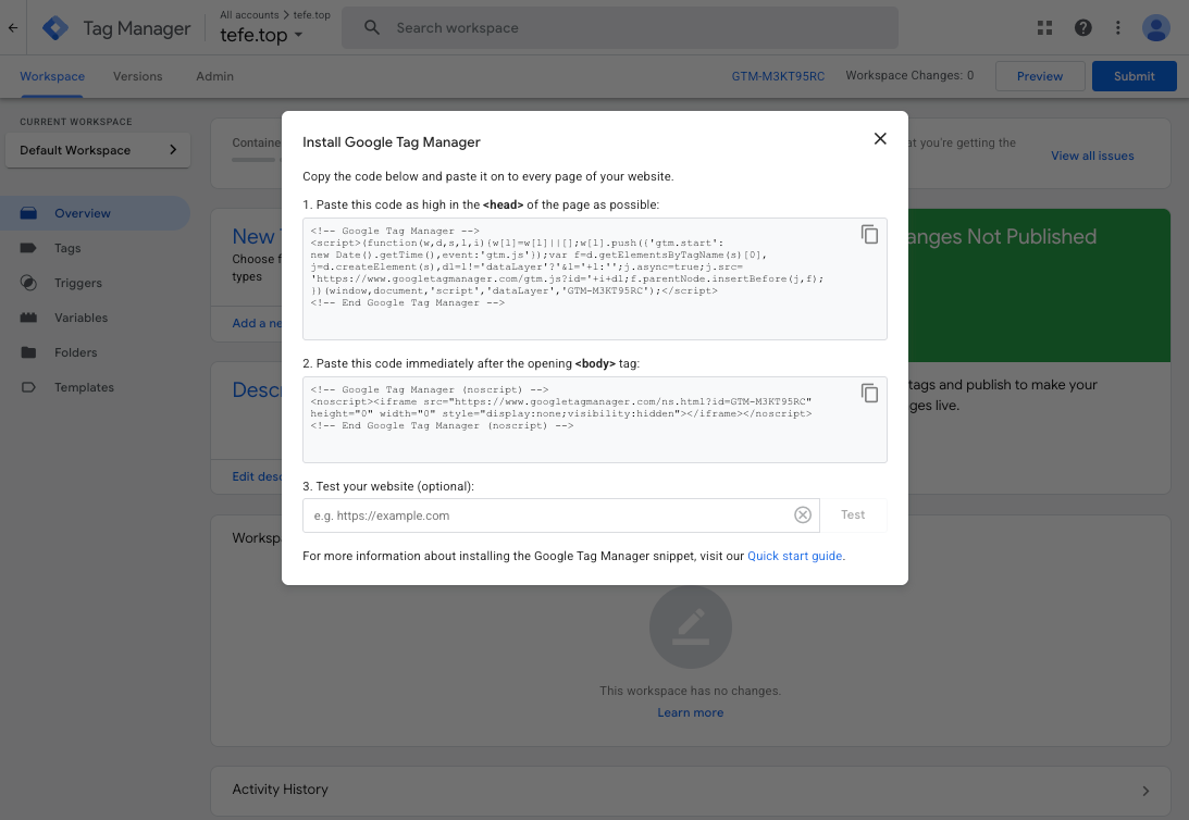- Go to your Workspace in Google Tag Manager.