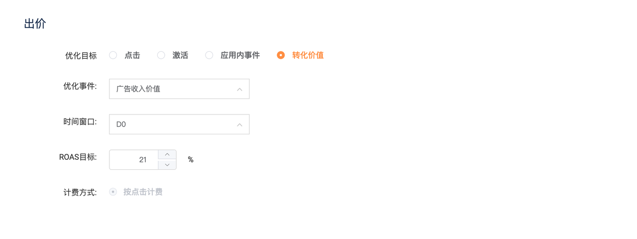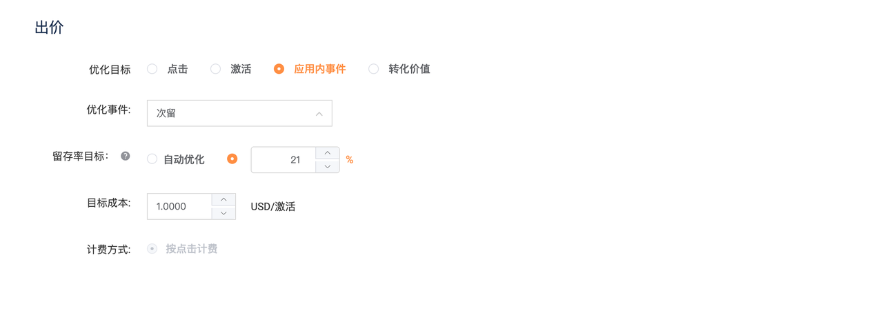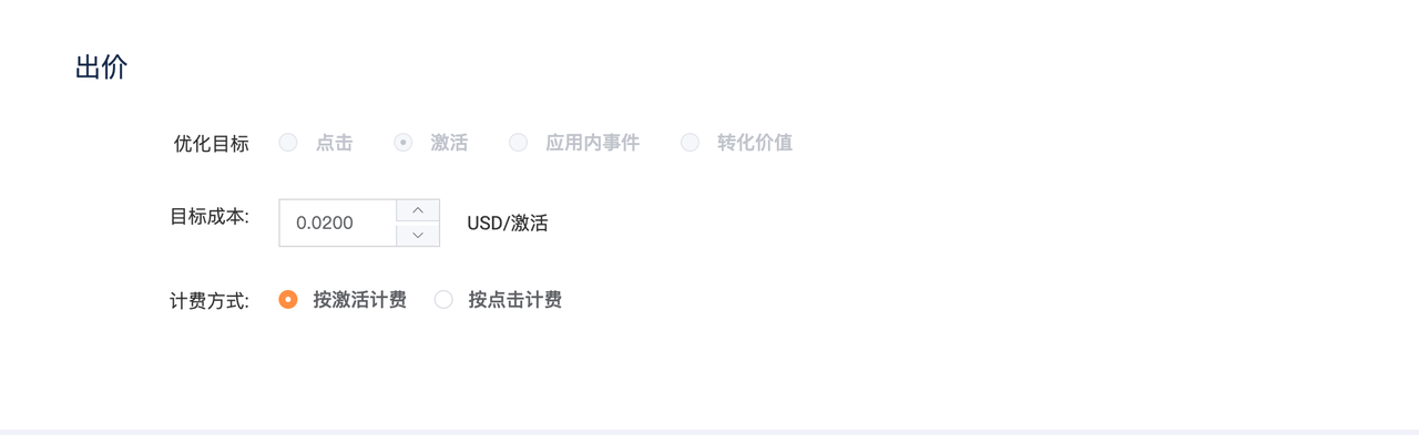 等同于现在的CPA/oCPC 存量CPA广告组:显示“按激活计费” 存量oCPC广告组:显示按点击计费 后续会全覆盖oCPC,新建广告组只会显示“按点击计费” |