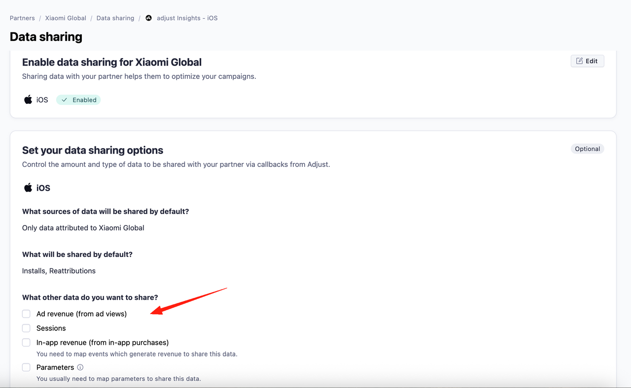 开启广告收入数据的回传以支持小米对您的 ROAS 进行优化。