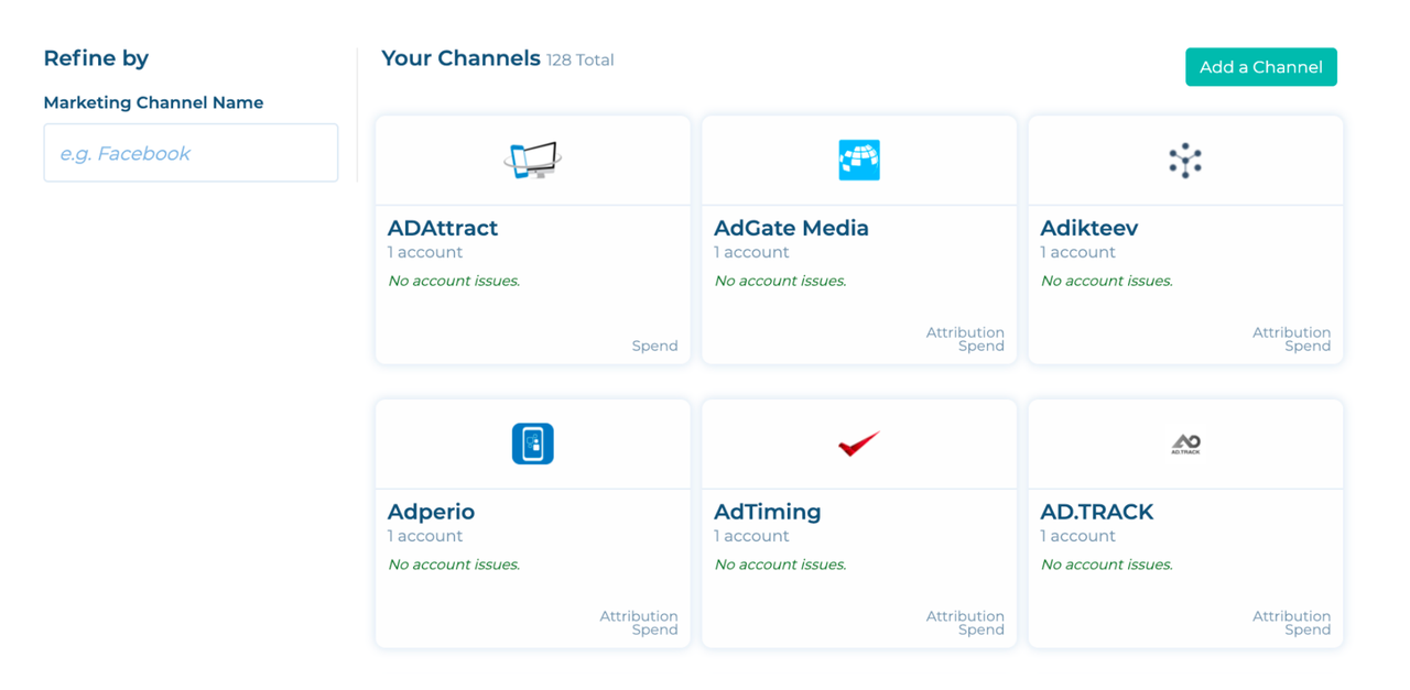 - 通过左上角筛选广告投放渠道,将选择相应的回调发送到该广告投放渠道,选择对应的 callback,这样所有激活都会即时回调给广告投放渠道。